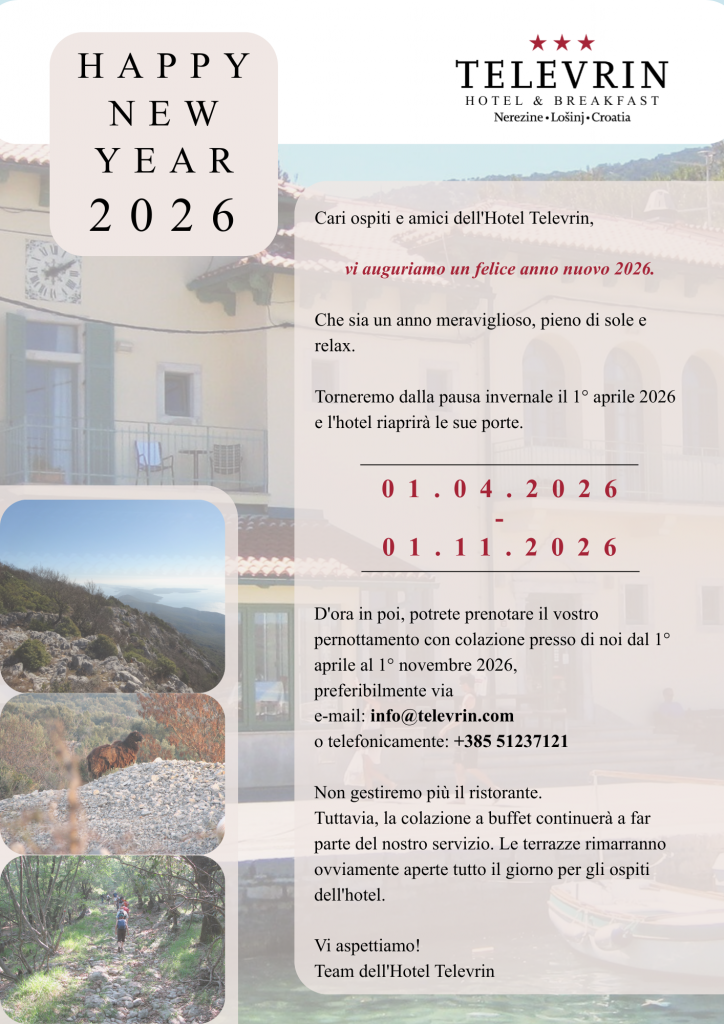 Scoprite l’Hotel Televrin e sperimentate l’eleganza senza tempo di questo edificio storico, unita al comfort moderno e alla calda ospitalità, mentre esplorate l’incantevole mondo dell’isola di Lussino.